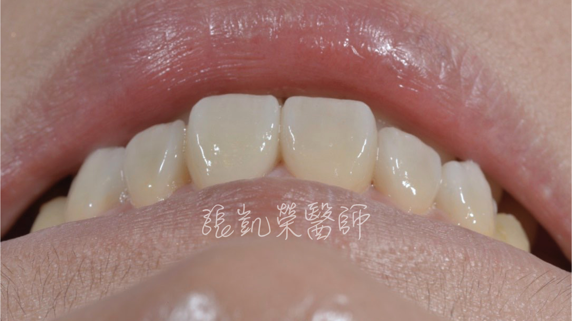 而L小姐還特別描述,他的貼片不要那種很白很白的,要跟其他牙齒顏色一至協調,經過多次討論後,榮醫師幫他決定貼片是比其他牙齒再白一色階就好,一來這樣可以讓牙齒稍微亮白些,但不至於跟其他牙齒造成顏色上的落差。