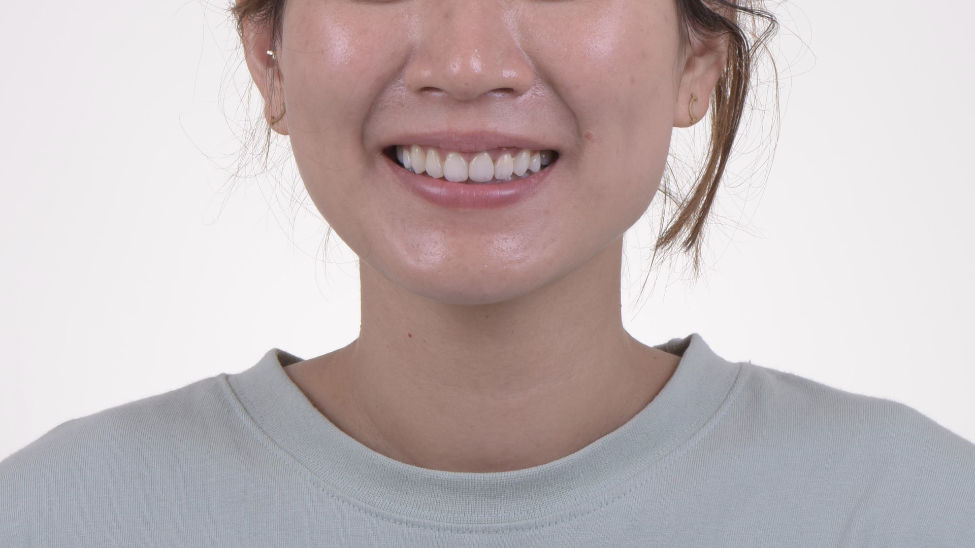 陳小姐本身是一位護理師,平日工作繁忙,總是對於自己的笑容不是很滿意;榮醫師檢查後,發現除了瓷牙牙冠邊緣變色外,鄰近牙齒也有蛀牙與樹脂填補物變等問題。