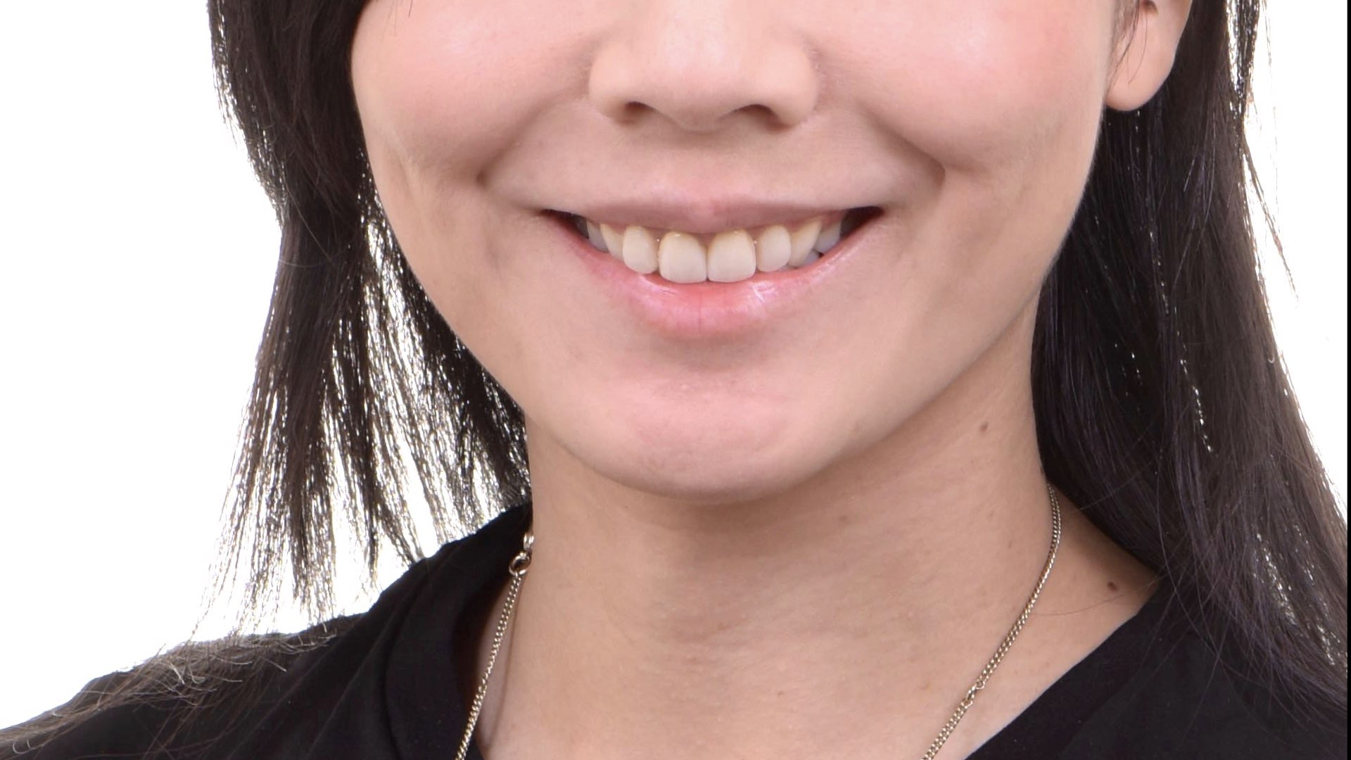 與林小姐討論後,除了更換全瓷冠外,還針對萎縮的牙齦,進行牙齦重建,可以改善牙齒中間的黑縫(黑三角),等到牙齦穩定後,完成全瓷冠,讓林小姐在每次的會議上,擁有與專業相稱的自信笑容。