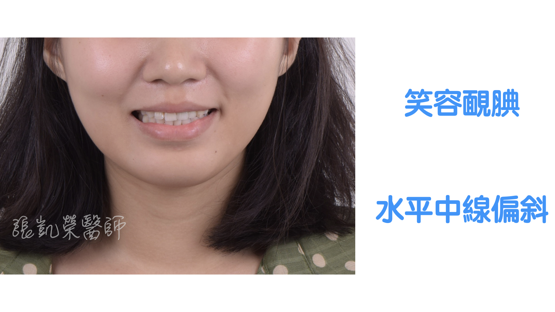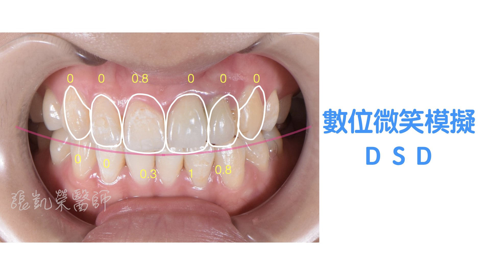 李小姐初次來榮醫師門診時,覺得牙齒偏黃,舊假牙不好看。 榮醫師診斷後,除了上述狀況外,牙齒的水平與中線有點偏斜,主要的是兩側牙齒的位置不太對稱,有一些前後的落差。 因為齒列排整的落差,需要先溝通,確認理想位置,所以榮醫師就先做數位微笑模擬(Digital Smile Design),跟李小姐確認長度、位置都滿意;再藉由美白、貼片、全瓷冠,讓李小姐可以自信開心地開懷大笑。 網站照片.004